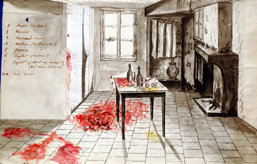 Ce dessin figure dans le dossier de procédure contre RIQUIER François, pour coups et blessures ayant entraîné la mort au cours d’une soirée trop arrosée qui a dégénéré.
