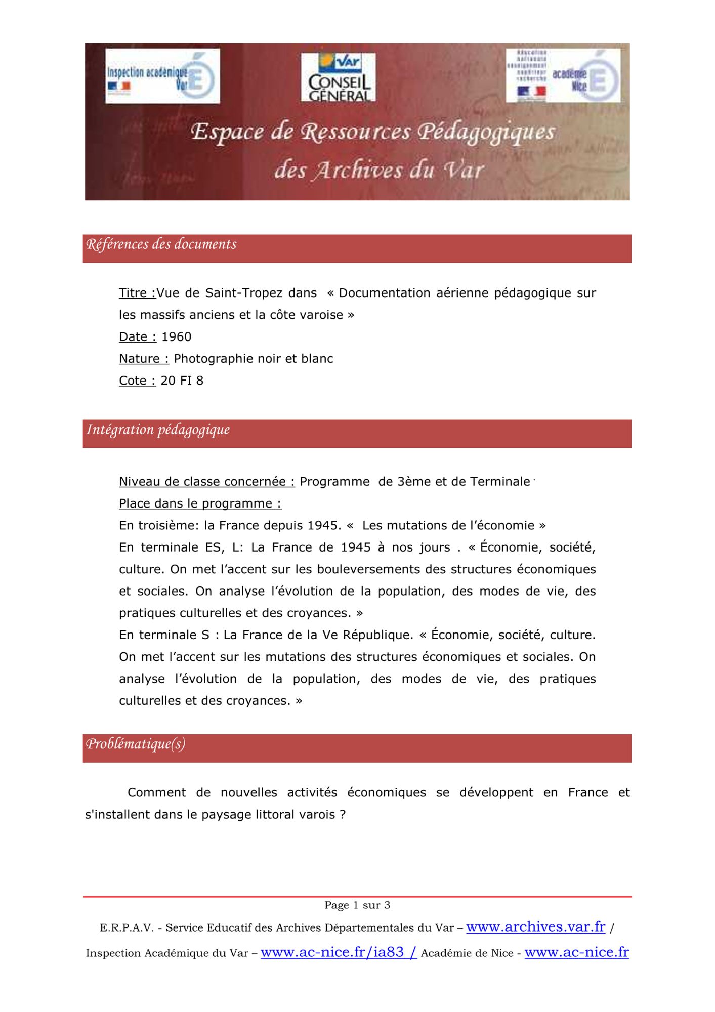 Ce document s'inscrit dans une série de photographies tirées de «Documentation aérienne pédagogique sur les massifs anciens et la côte varoise» datant de 1960.
