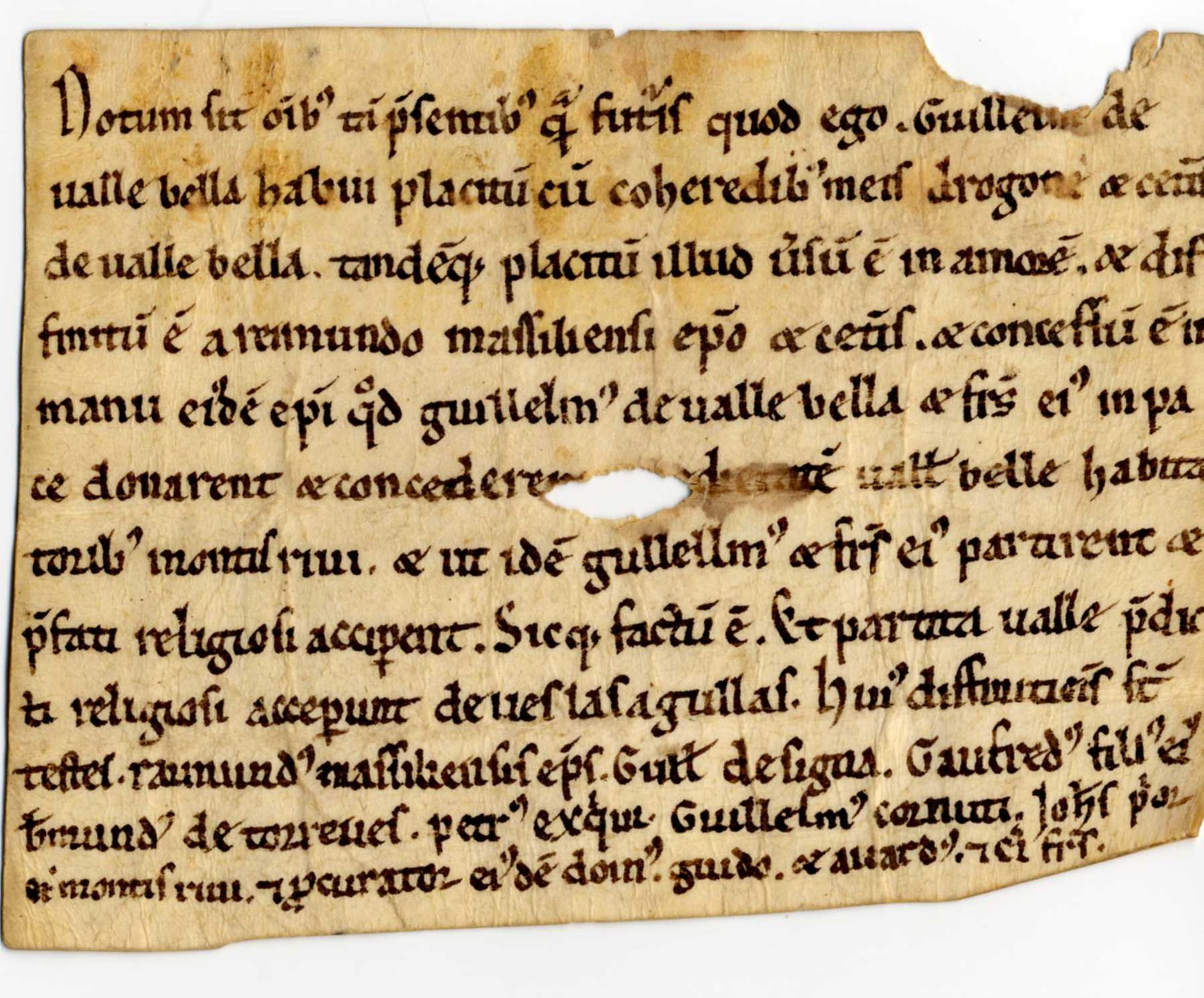 Ce document coté 1 H 178 fait partie d'un esemble de 5 parchemin et un sceau datant de 1141 à 1243. Ce document est une donation de terre au quartier de Gavaudan.