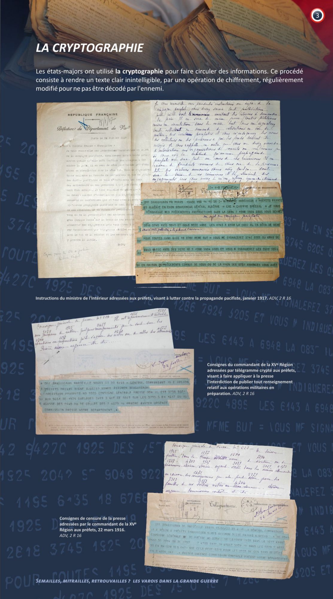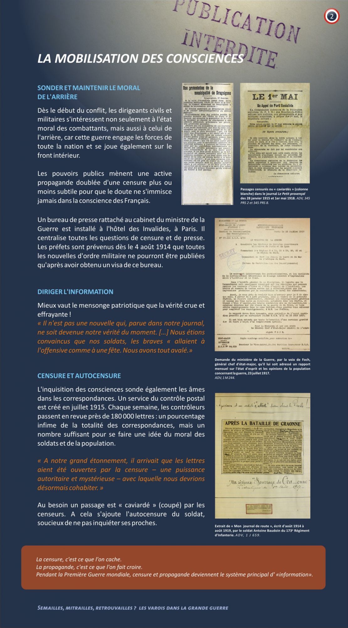 3 – présentation des documents officiels liés à la mobilisation, la censure, l’effort de guerre, la solidarité… Objectif : présenter les documents d’archives les plus représentatifs de cette période.