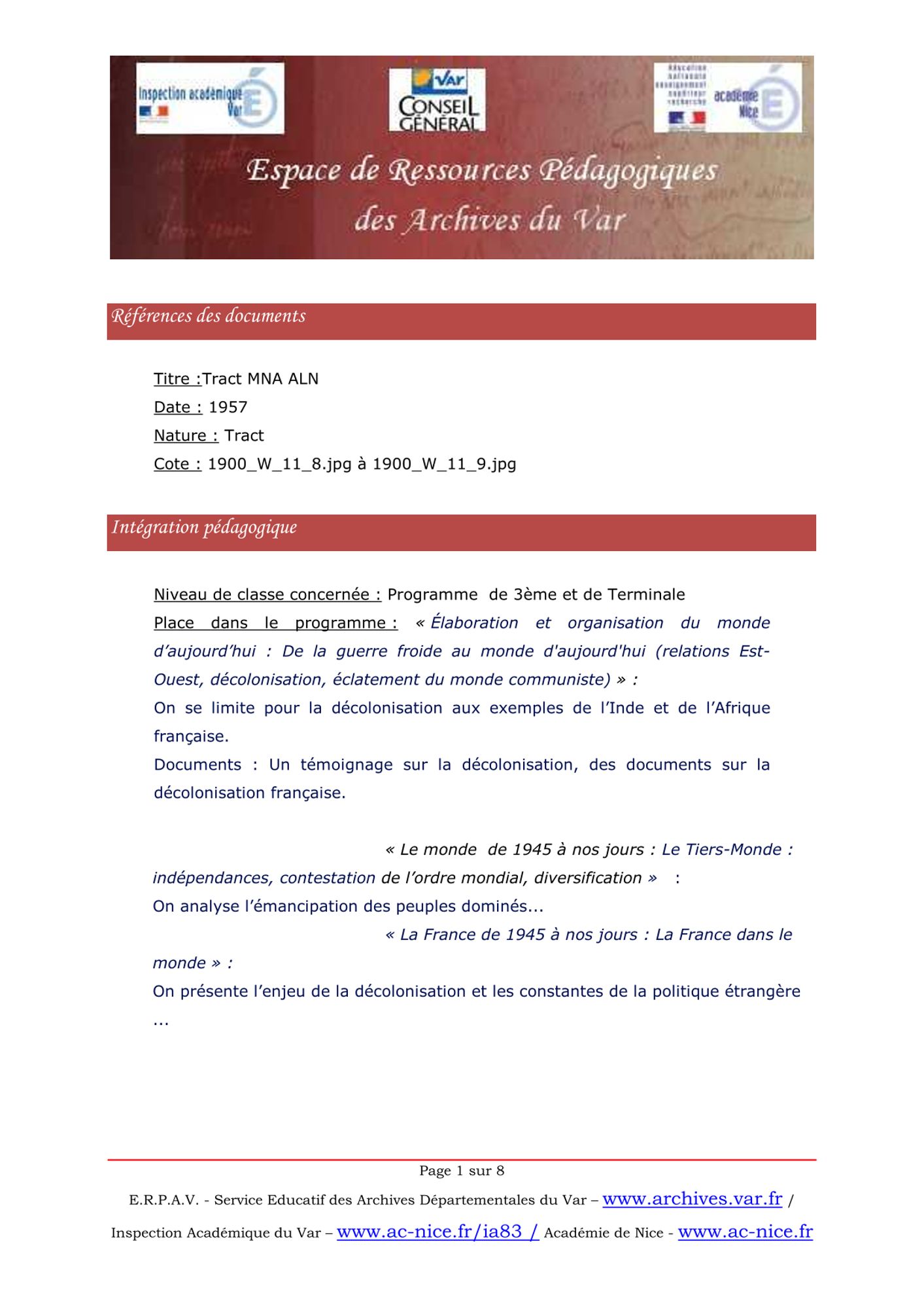 Une analyse de texte peut être proposée aux élèves afin de mettre en évidence les différents thèmes (la lutte en Algérie, la lutte MNA/FLN, la mobilisation de la population immigrée algérienne …) présents ici et d'en déduire les objectifs recherchés par les auteurs.