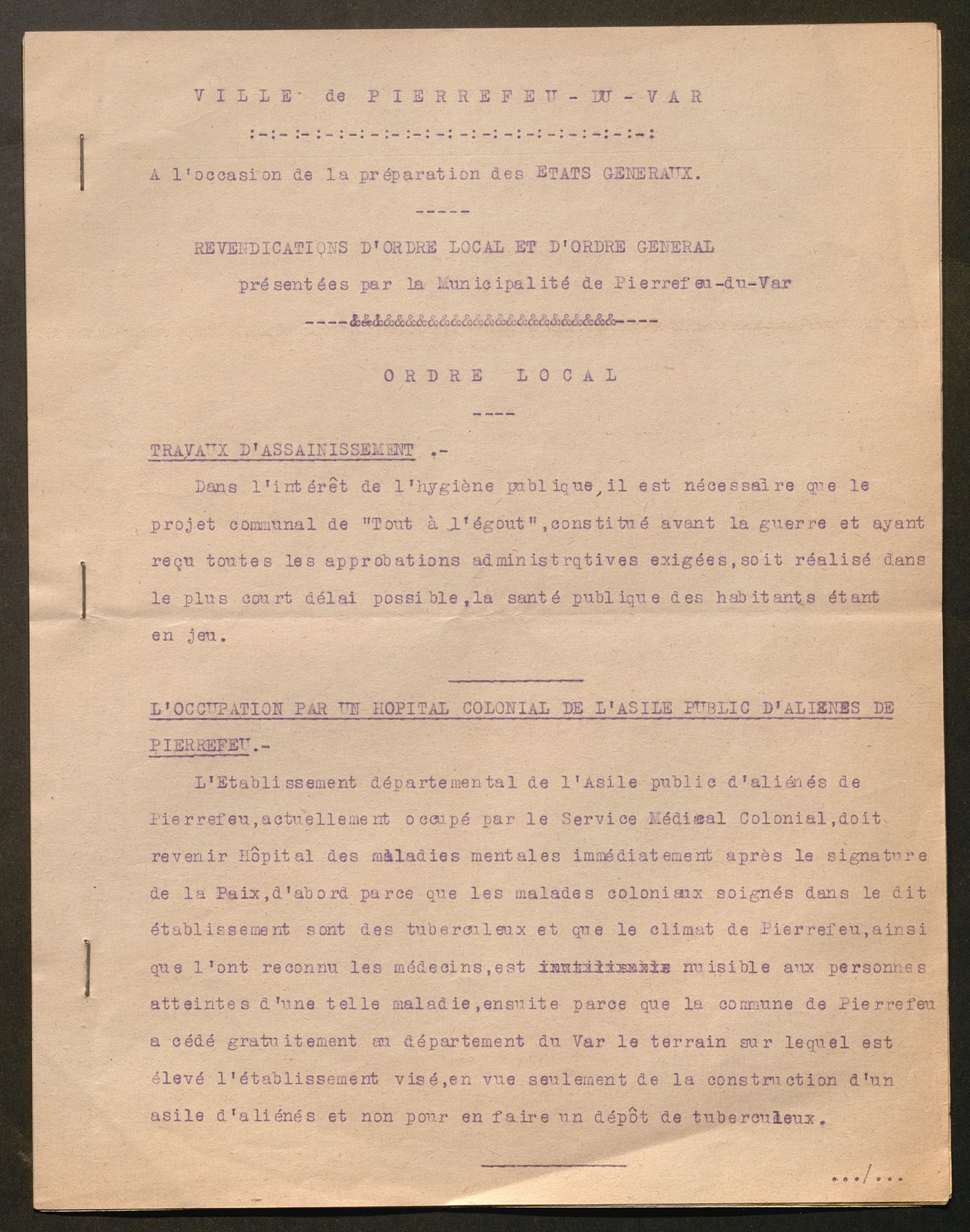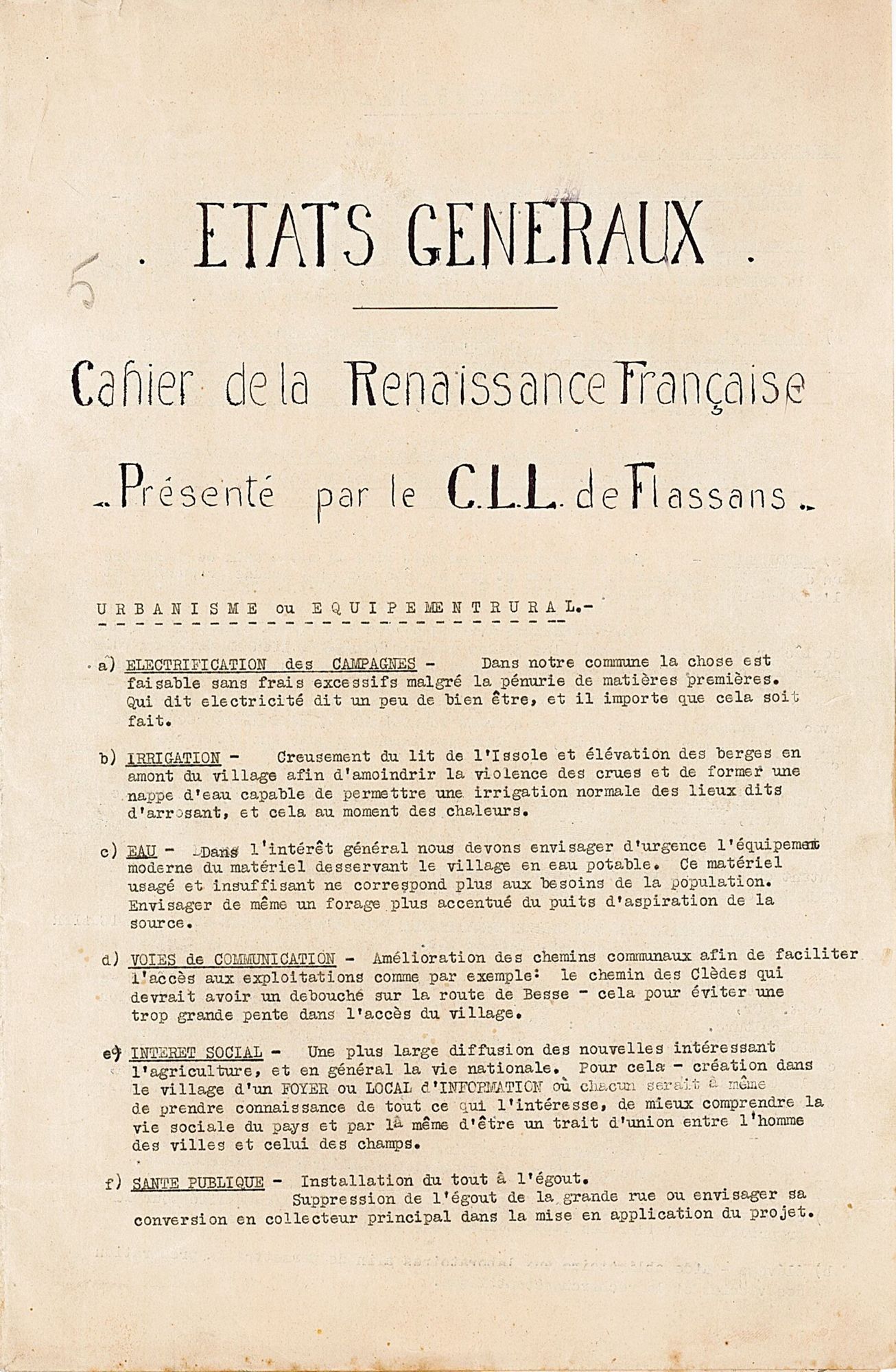 En fait, ces cahiers qui reflètent le Var des villages et petites villes sont marqués par le souci d’assurer l’égalité des ruraux et des urbains en matière de conditions de vie.