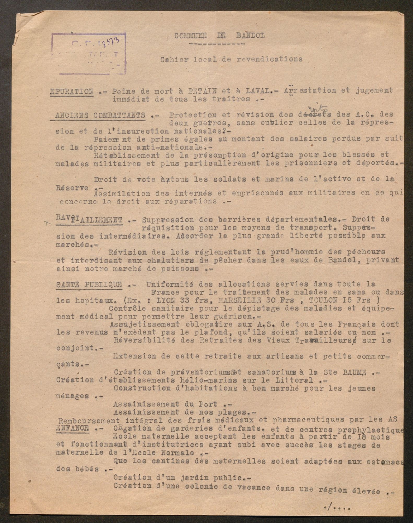 Cahiers de doléances 1945