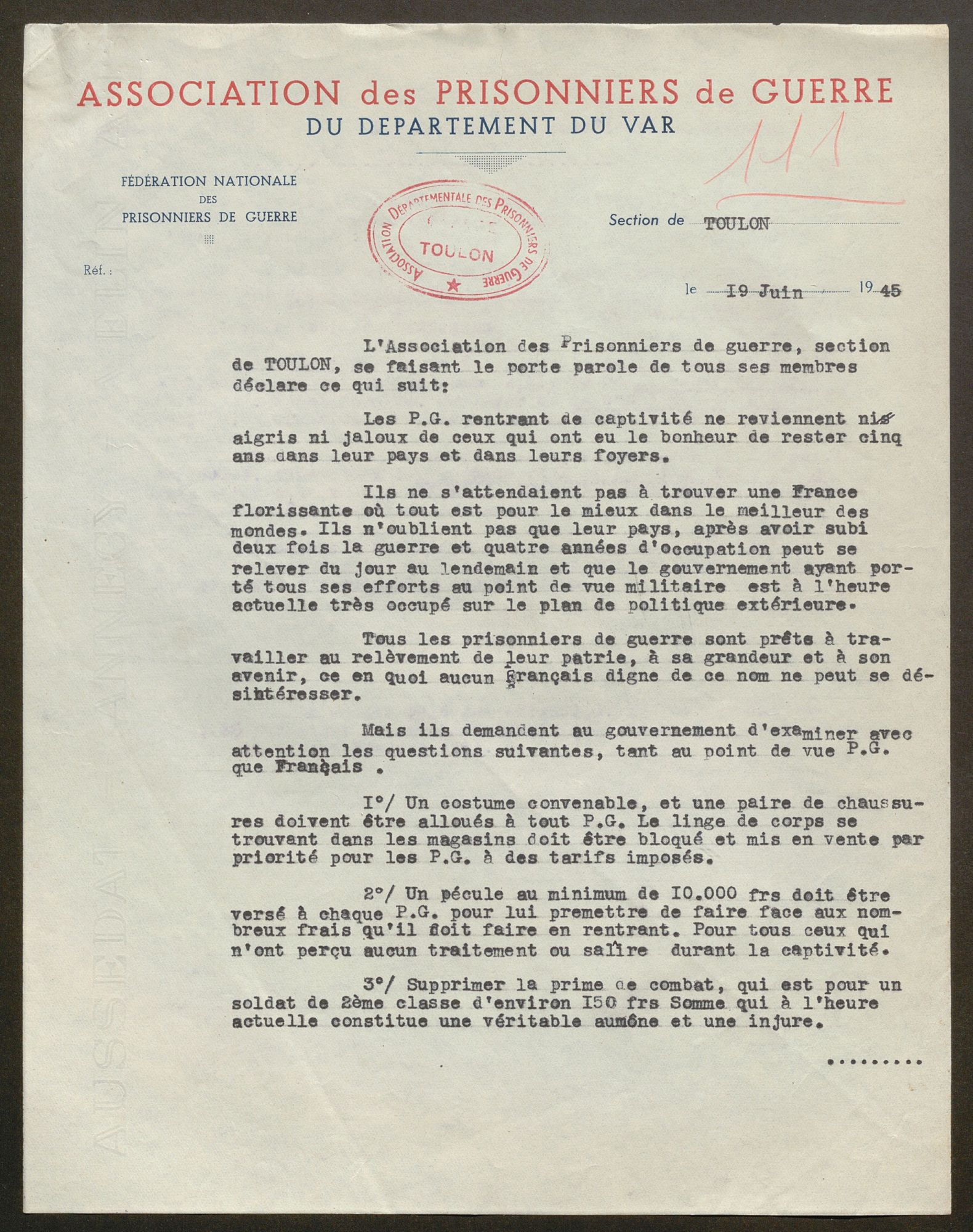 La deuxième revendication relève du même horizon d’urgence. C’est le rétablissement rapide des communications routières et ferroviaires. Les propositions communales sont souvent très précises, indiquant les ponts à reconstruire, les liaisons à assurer, les fréquences souhaitées, en particulier avec Toulon.