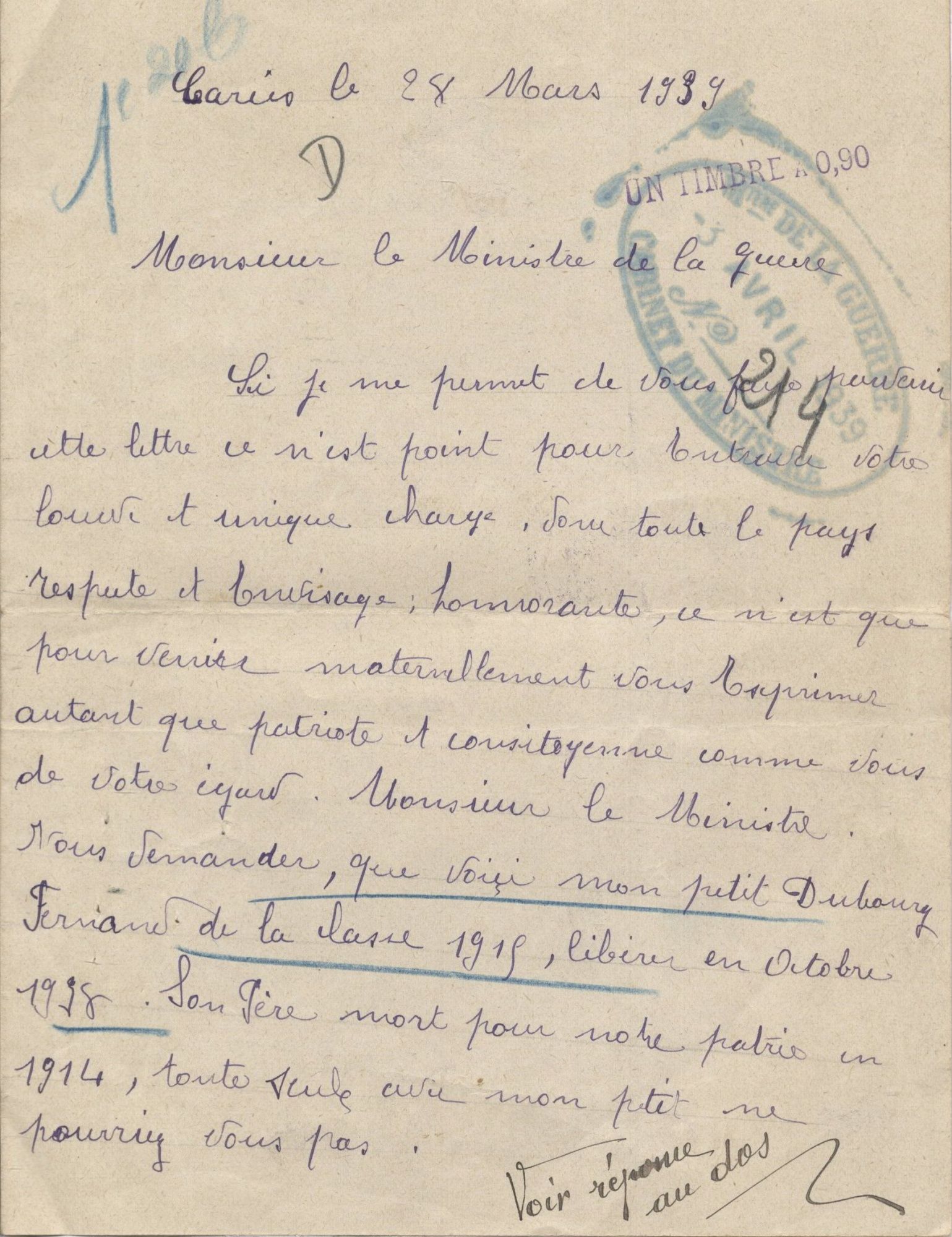 Correspondance de Fernand Dubourg en 1939