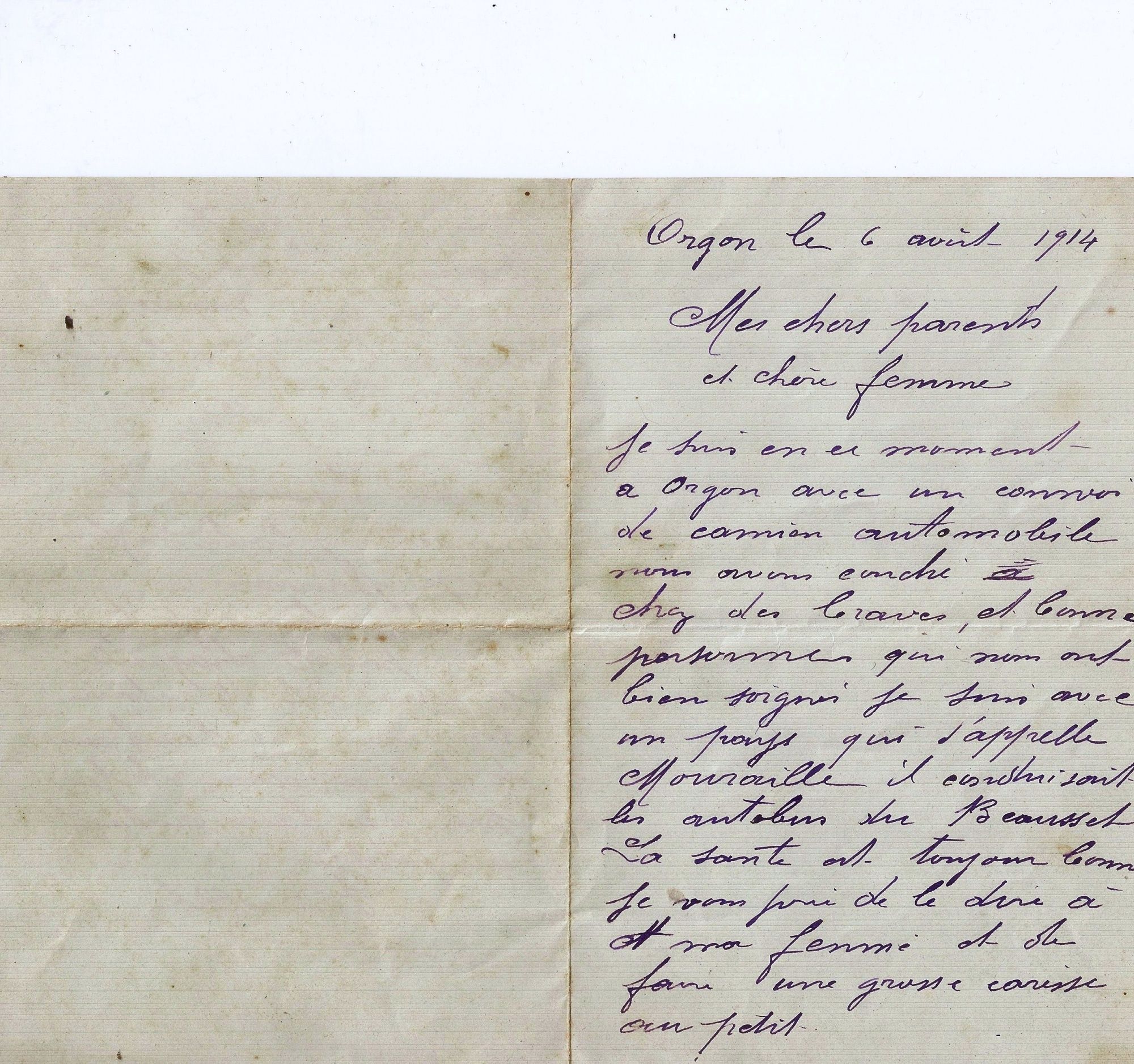 Correspondance de Jean Rebufat lors de séjour à la caserne de Courbevoie avant son départ pour le Front