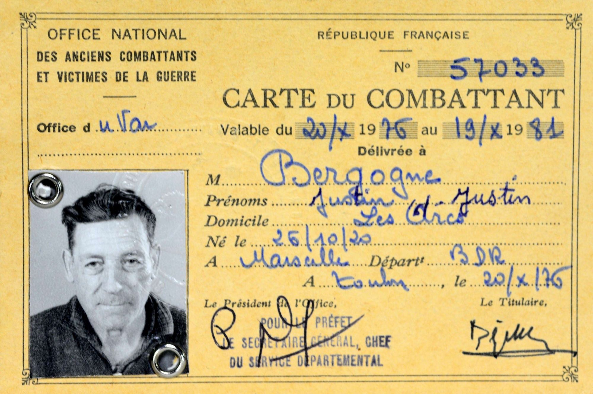 Justin Bergogne, né le 26 octobre 1920 à Marseille, matelot de 2e classe a reçu la médaille commémorative 39/45 avec barrettes "Engagé volontaire Méditerranée", ainsi que la médaille commémorative "campagne Italie" et la croix de guerre.