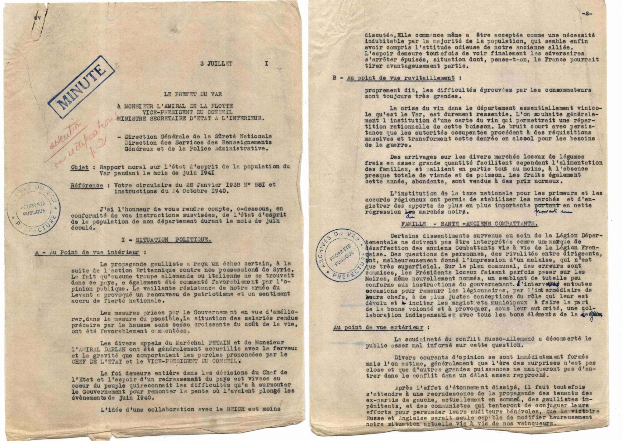 Rapport du préfet du Var au ministre de l'Intérieur sur la situation morale du département du Var en juin 1941 Rapport du préfet du Var au ministre de l'Intérieur sur la situation morale du département du Var en juin 1941 44