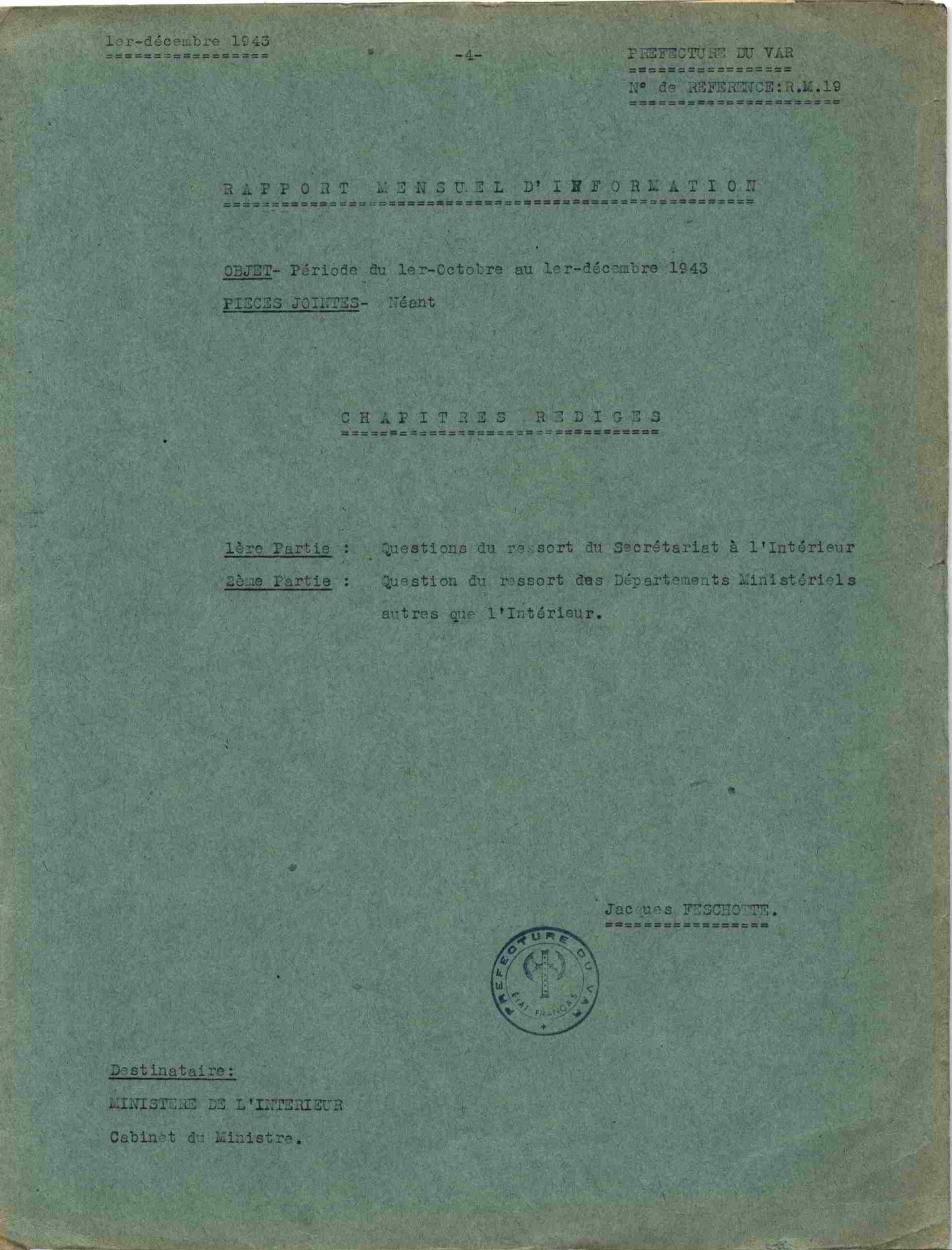 Rapport du préfet du Var au ministre de l'Intérieur sur la situation morale du département du Var pour la période du 1er octobre 1943 au 1er décembre 1943 Rapport du préfet du Var au ministre de l'Intérieur sur la situation morale du département du Var pour la période du 1er octobre 1943 au 1er décembre 1943 36