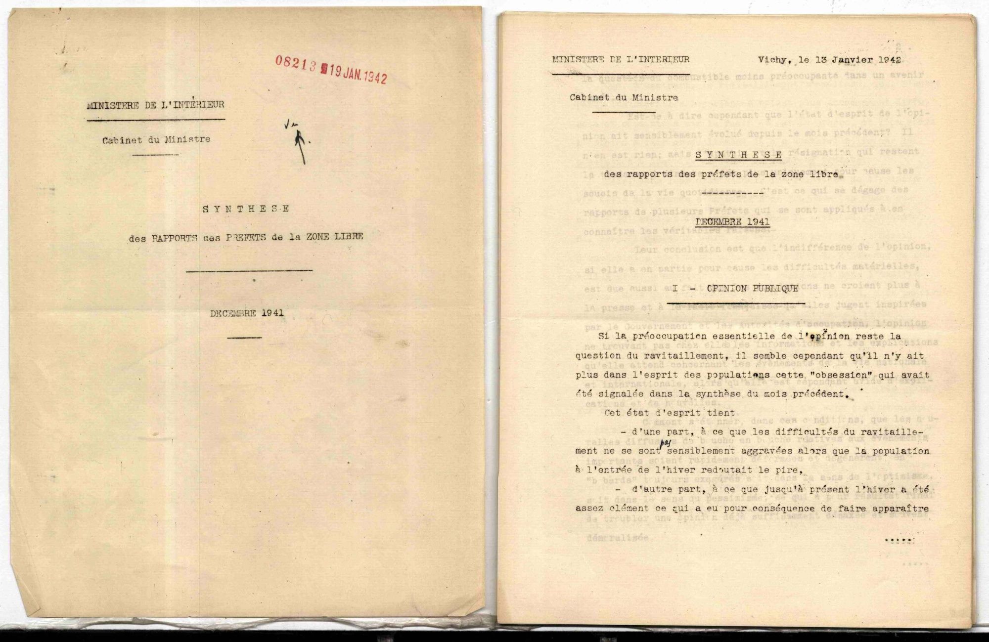 Synthèse des rapports mensuels des préfets de la zone libre au ministre de l'Intérieur (décembre 1941) Synthèse des rapports mensuels des préfets de la zone libre au ministre de l'Intérieur (décembre 1941) 13