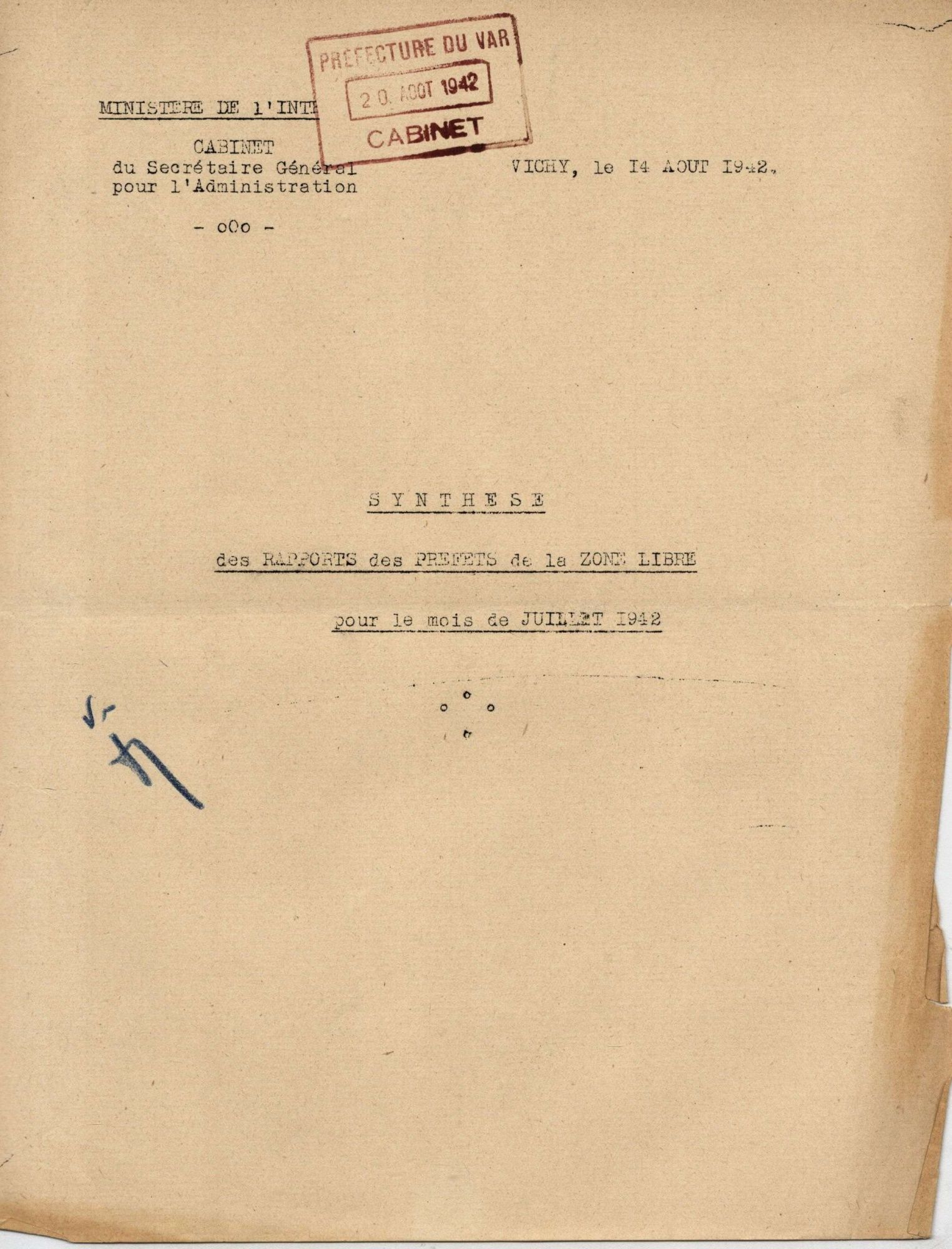 Synthèse des rapports mensuels des préfets de la zone libre au ministre de l'Intérieur (juillet 1942) Synthèse des rapports mensuels des préfets de la zone libre au ministre de l'Intérieur (juillet 1942) 12