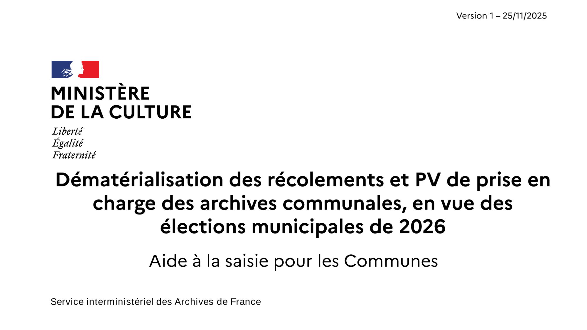 Dans le cadre des élections municipales de 2026, il est nécessaire de récoler en priorité et de manière précise les principales collections, soit :