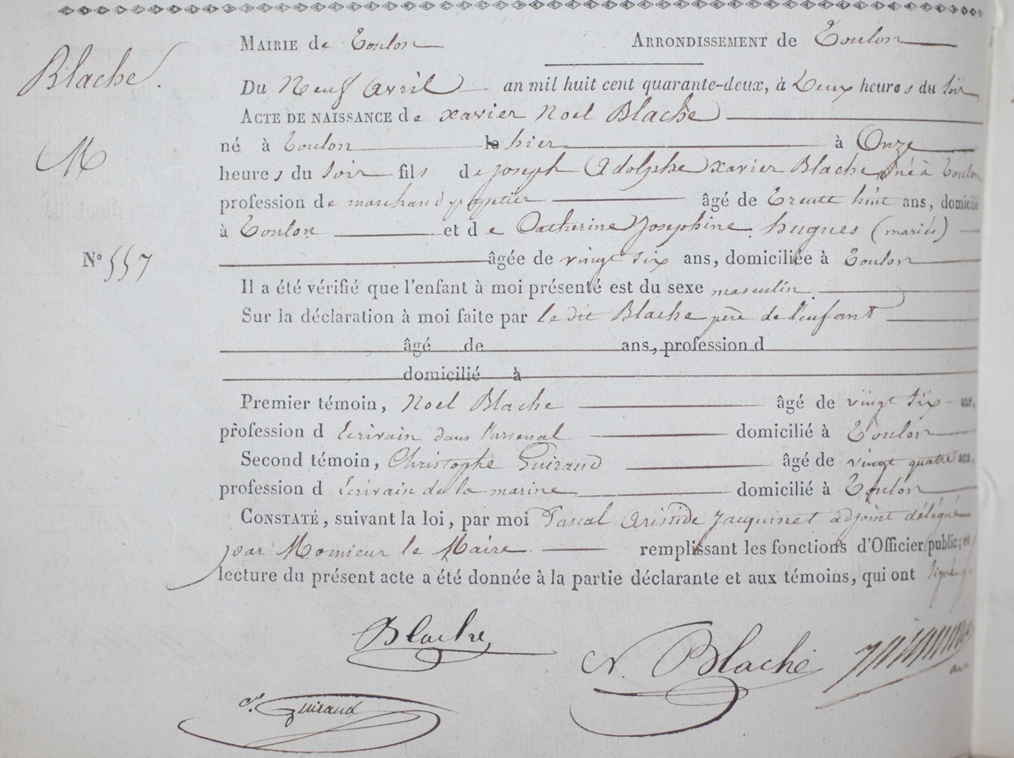 Blache à été maire de Toulon, à 28 ans, en 1870.