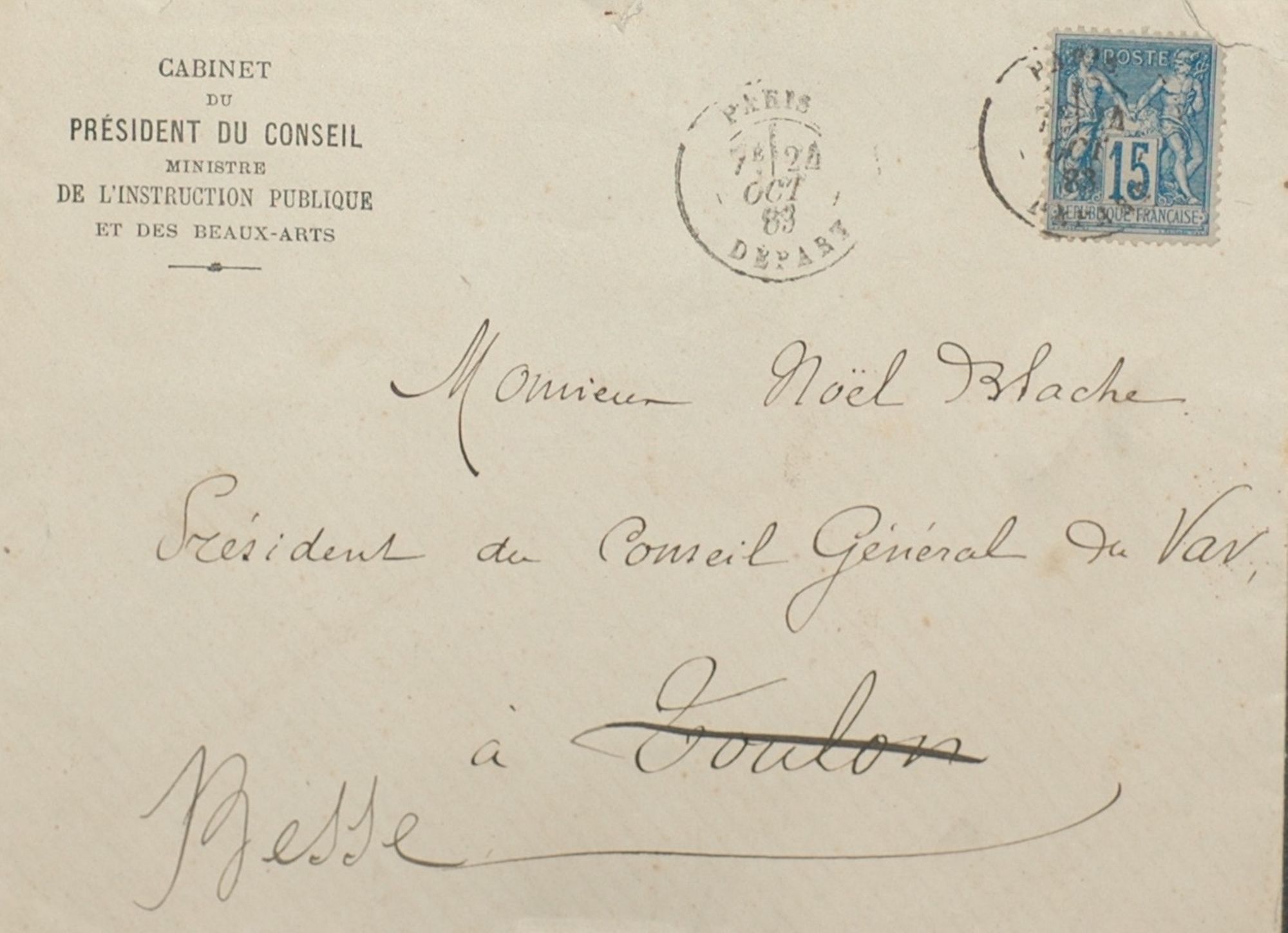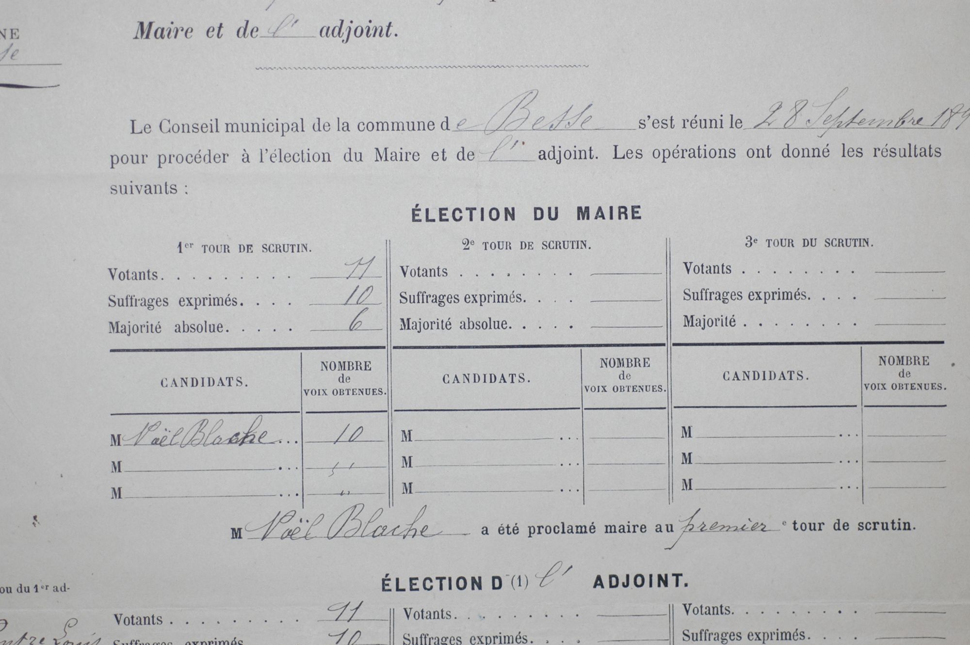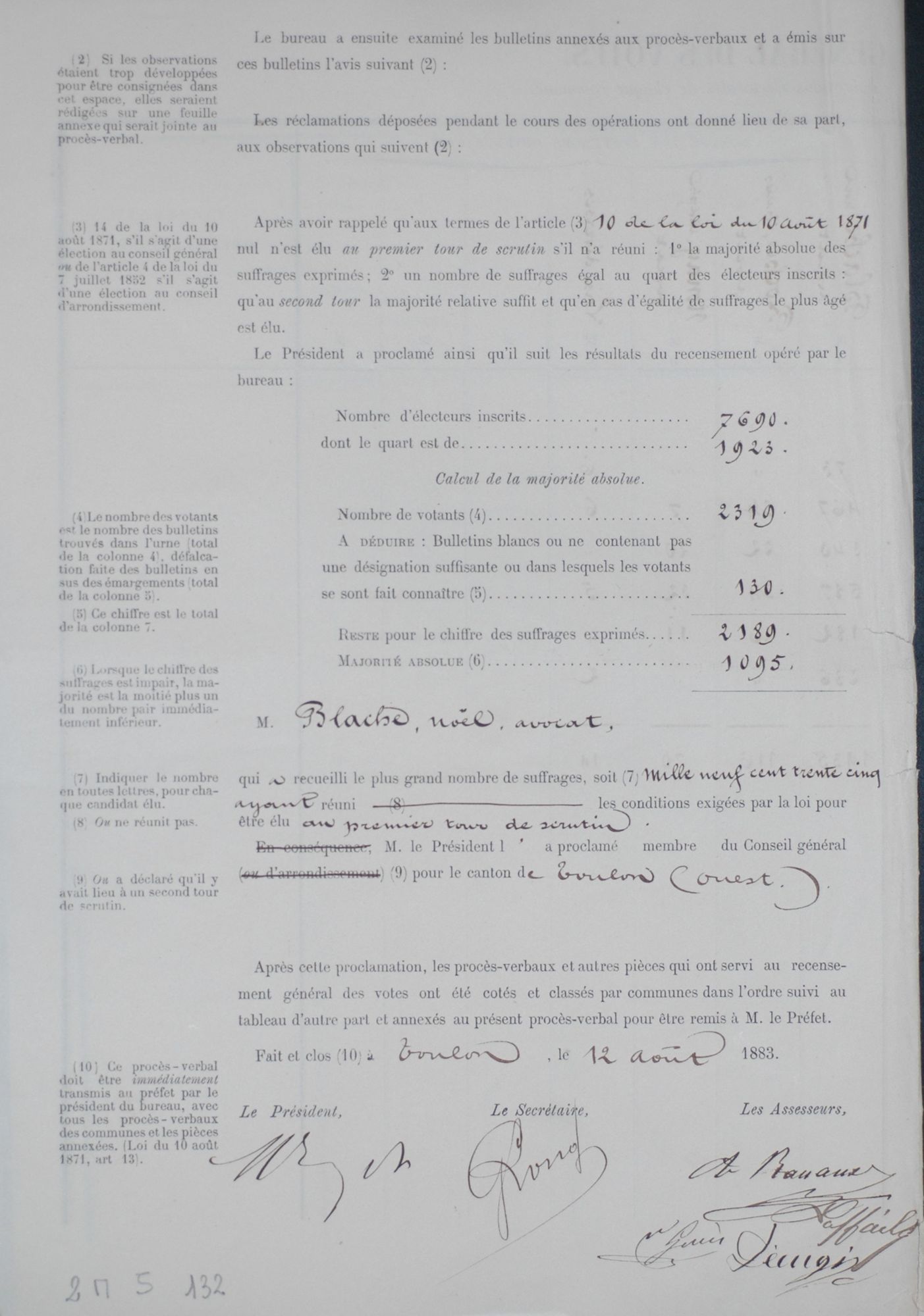 Noël Blache obtient la majorité des scrutins. (scrutin du 12 août 1883)