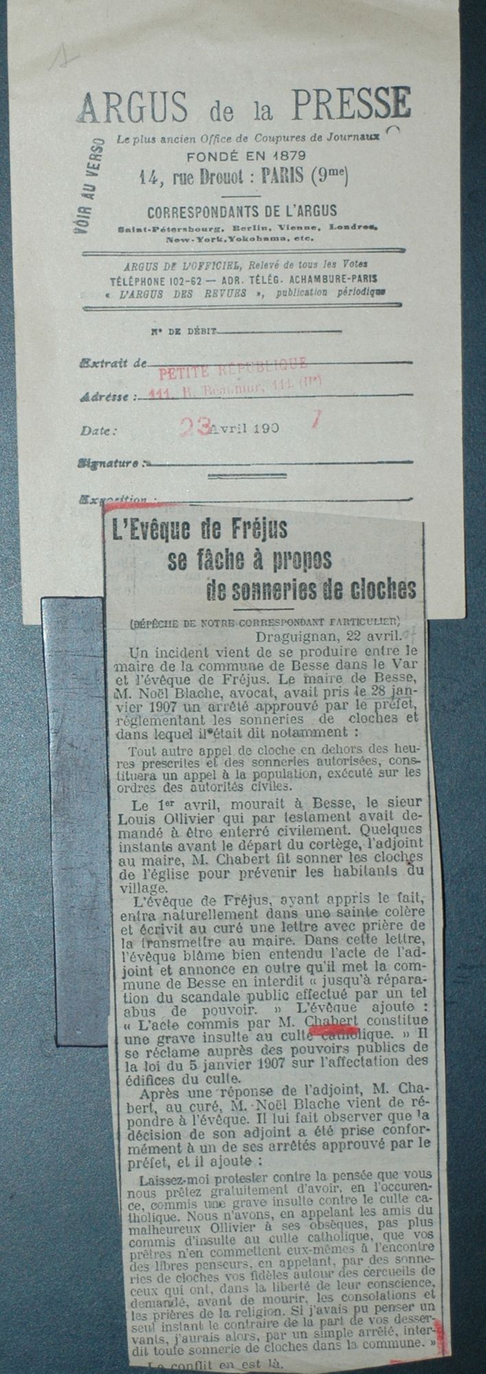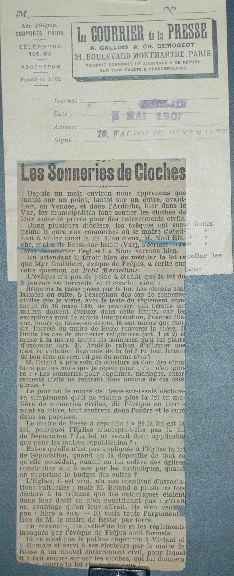 La « querelle des cloches » (avril 1907)