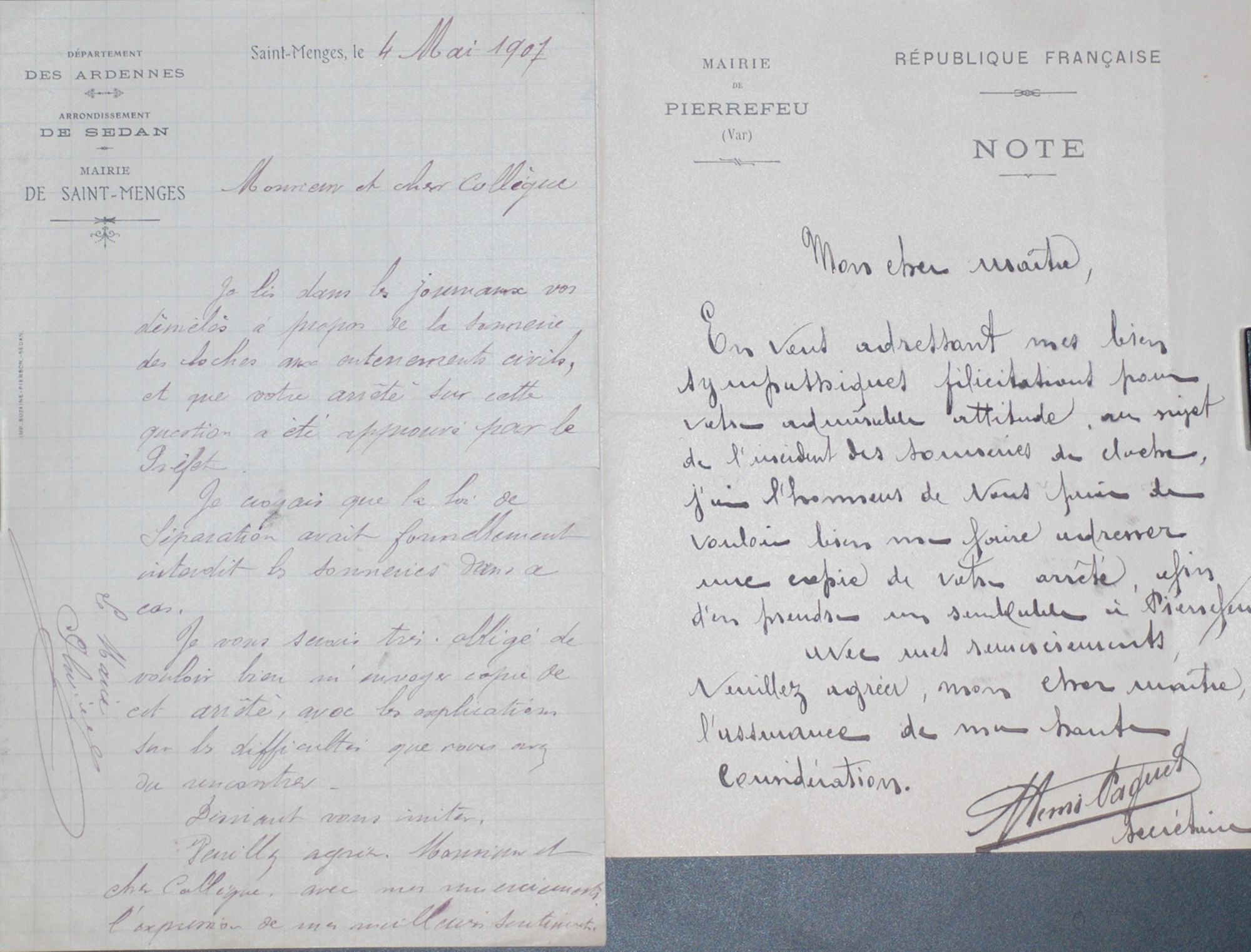 Quelques exemples de la nombreuse correspondance que reçut Blache, suite à l'affaire de la "querelle des cloches".