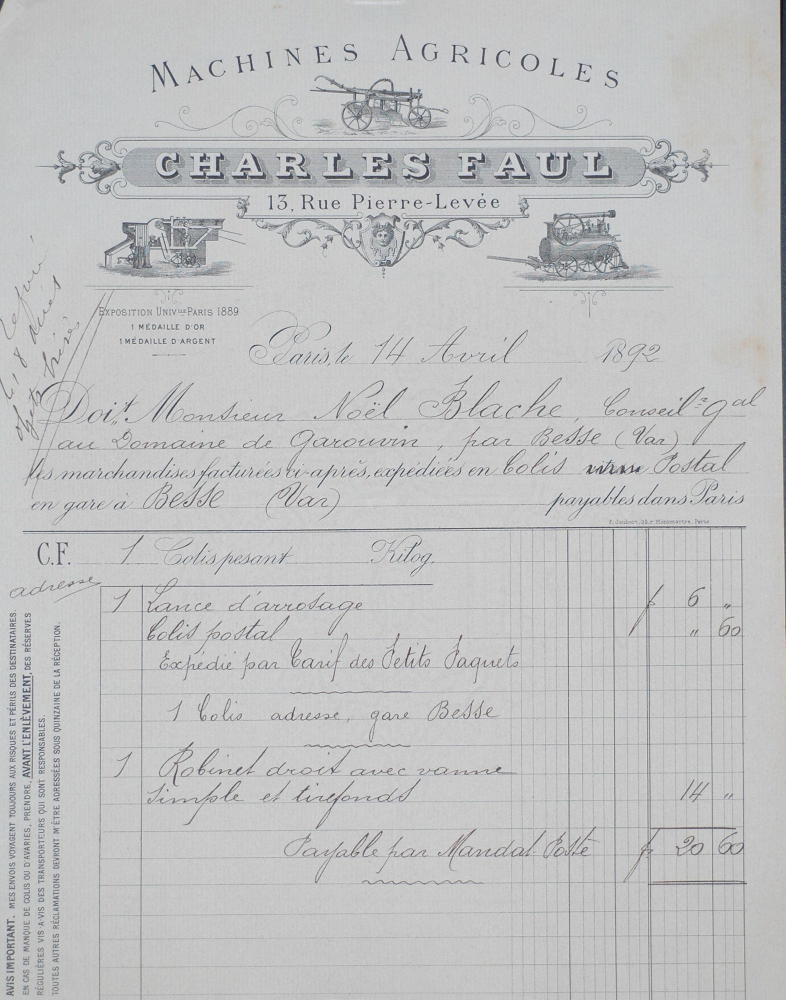 Les commandes et factures du domaine de Garouvin, propriété vinicole de Noël Blache.