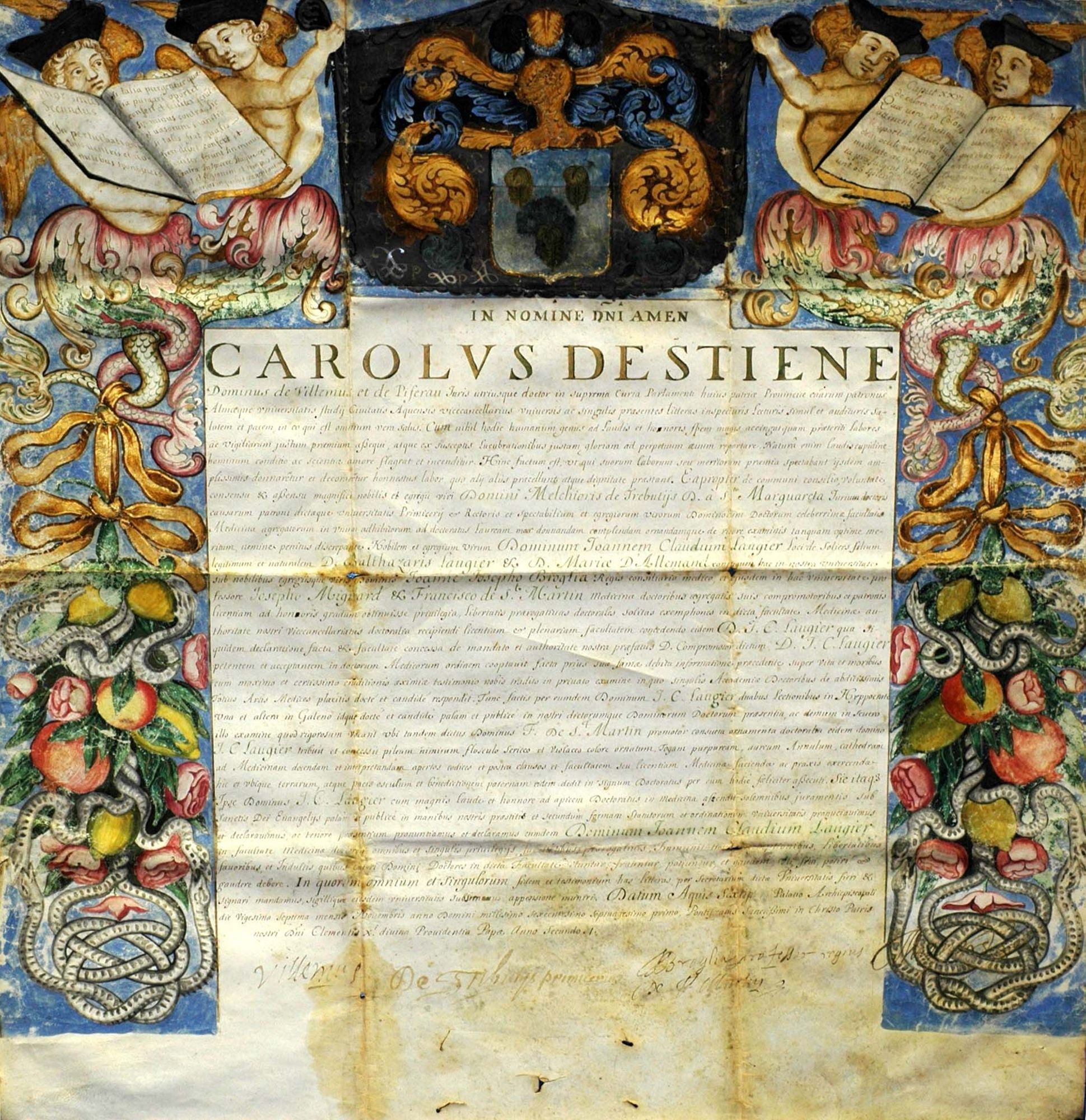 Trésors d'archives Cette exposition virtuelle présente aux internautes un florilège des documents les plus beaux et les plus représentatifs des Archives départementales du Var. Trésors d'archives - Lancement du bananier Djoliba aux chantiers navals de la Seyne-sur-mer (1947) 1 Trésors d'archives - Plan anglais du blocus de Toulon par les Anglo-Hollandais (1707) 1 Trésors d'archives - Portrait de Clémenceau avec sa signature [début 20e s.] 1 Trésors d'archives - Dessin de Pierre Letuaire, caricaturiste toulonnais (19e s.) 1 Trésors d'archives - Dessins de Pierre Letuaire, caricaturiste toulonnais (19e s.) 1 Trésors d'archives - Diplôme enluminé de docteur en Médecine attribué à Jean-Claude Laugier (1671) 1 Trésors d'archives - Image d'Epinal représentant Napoléon Bonaparte au siège de Toulon de 1793 [1810-1813] 1 Trésors d'archives - Photo publicitaire représentant l'Hôtel des Iles d'or à Hyères [début 20e s.] 1 Trésors d'archives - Affiche touristique de Saint-Raphaël (vers 1938) 1 Trésors d'archives - Affiche publicitaire du journal Toulon-soir (20e s.) 1 Trésors d'archives - Bulle pontificale d'Innocent II (1143) 1 Trésors d'archives - Vignette révolutionnaire 1 Trésors d'archives - Drapeau tricolore et billet saisis comme pièces à conviction (1817) 1 Trésors d'archives - Dragon figurant sur un feuillet d'un registre des délibérations communales de Draguignan (1552-1563) 1 Trésors d'archives - Portrait de Saint-Lazare 1 Trésors d'archives - Journal : La Résistance du Var libéré (17 août 1944) 1 Trésors d'archives - Plan "futuriste" du centre urbain de Draguignan (1933) 1 Trésors d'archives - Portrait de Jacques-Athanase Lombard-Taradeau, député du Tiers-Etat [fin 18e s.] 1 Trésors d'archives - Arrivée de l'escadre russe à Toulon (1893) 1 Trésors d'archives - Lettrine en couleur extraite d'un antiphonaire (15e s.) 1 Trésors d'archives - Feuillet d'un registre de minutes d'Anthoine Bonifay (1528) 1 Trésors d'archives - Seing manuel de Guillermo Régis, notaire apostolique et impérial (1467) 1 Trésors d'archives - Plan et projet de reconstruction d'une partie du pont de Vins sur la rivière de Caramy (1791) 1 Trésors d'archives - Modèles et dessins brevetés de boîtes en carton blanc servant à l'expédition des graines de vers à soie (1923) 1 Trésors d'archives - Plan des bois de la commanderie hospitalière d'Astros située sur la commune de Vidauban (1769) 1 Trésors d'archives - Planeurs et troupes américaines à La Motte (15 août 1944) 1