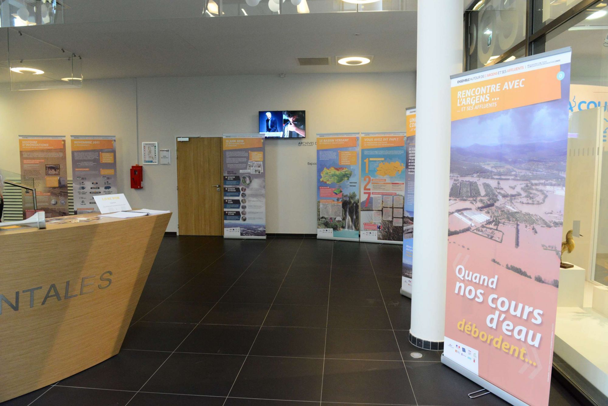 Le Département, via sa Direction de l'Environnement, propose une exposition itinérante pour sensibiliser au risque inondation sur le bassin versant de l'Argens et ses affluents. Les 28 panneaux, visibles aux Archives jusqu'à la fin de l'année, complètent notre exposition temporaire sur la thématique de l'eau dans le Var. Ces panneaux pourront dès 2016 être empruntés par d'autres partenaires...