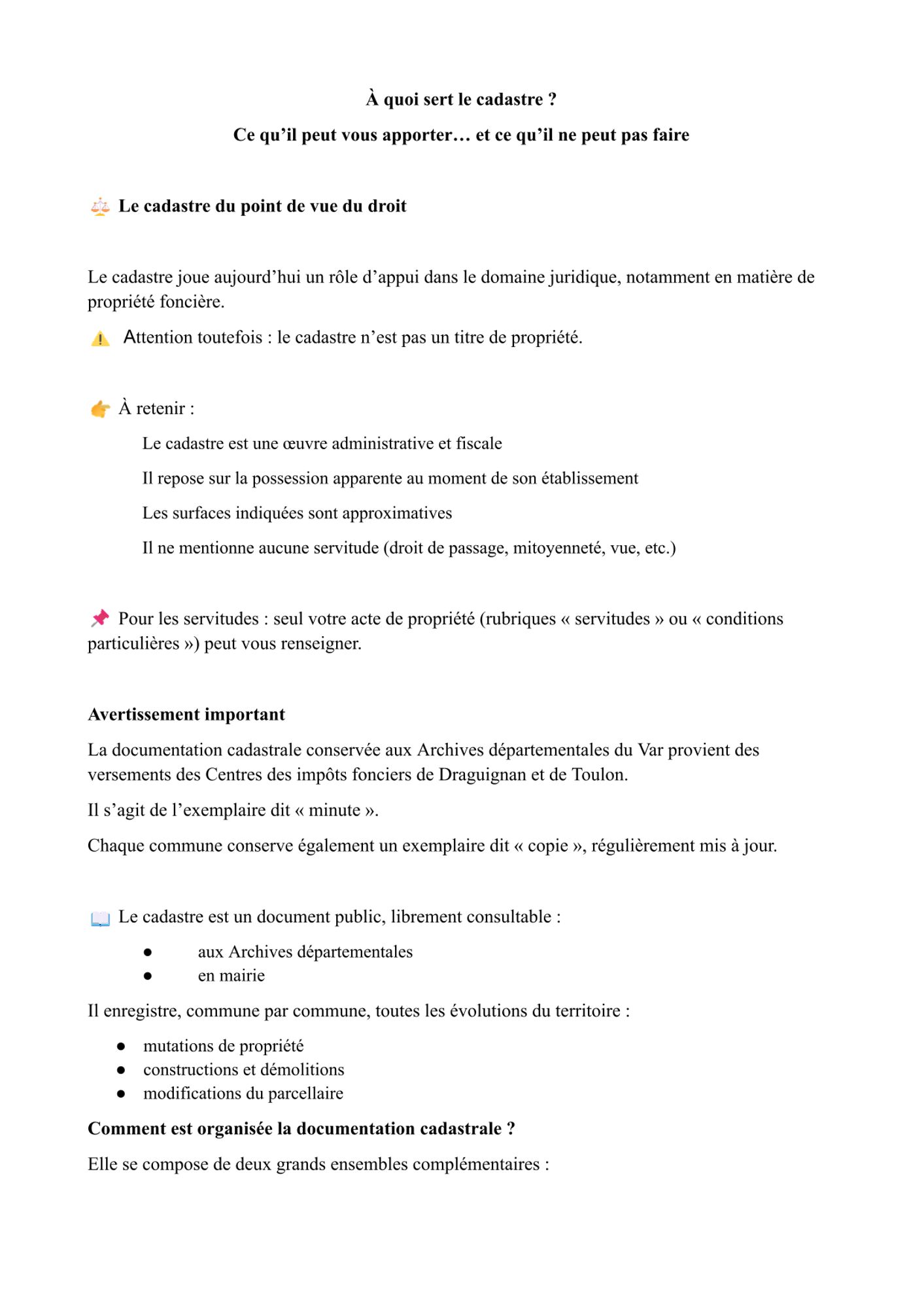 Les plans du cadastre rénové sont numérisés et en ligne pour les arrondissements de Draguignan et Brignoles. Les plans rénovés du bureau de Toulon ne sont pas encore en ligne.