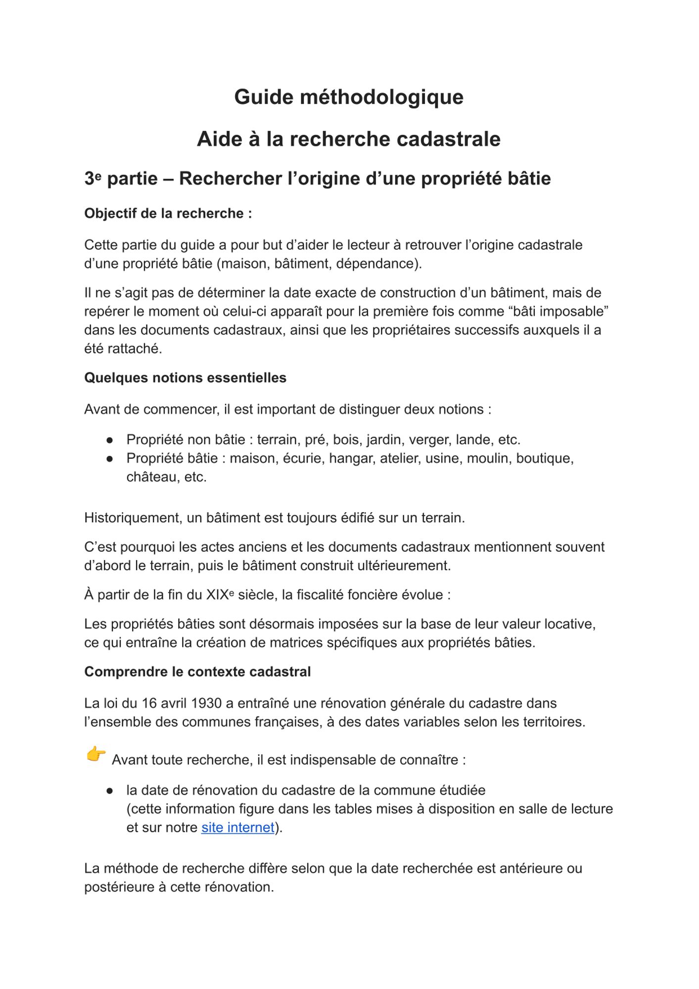 Les agents des Archives départementales ne réalisent pas les historiques de parcelles. En effet, il n'entre pas dans les attributions du personnel des archives de se substituer aux particuliers pour leurs recherches, au détriment de ses missions de conservation, classement, inventaire et communication. Vous trouverez toutes les informations utiles sur cette page
